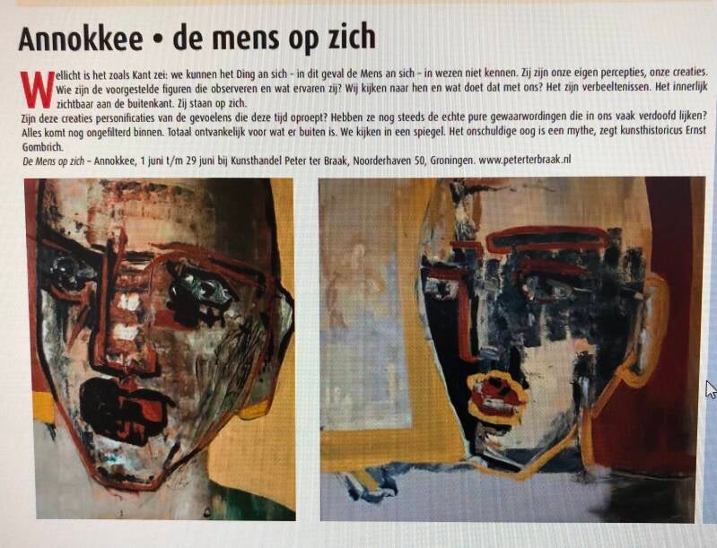 Her most recent exhibition was the solo exhibition De Mens Op Zich at the Peter ter Braak art gallery in the city of Groningen.